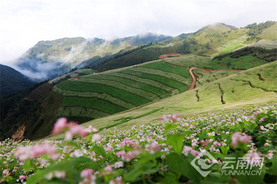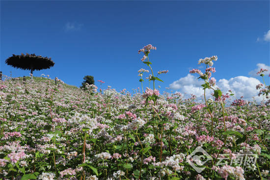 谁能想到,这片令人陶醉的花海,几年前还是一片荒山坡。2021年以来,中和村立足环境资源优势,采取“党总支+合作社+农户”模式,整合闲置土地资源,集中连片种植荞麦。同时,依托中山大学帮扶和沪滇协作项目,不断完善道路、民宿、客栈等基础设施,打造了“云上花海”乡村旅游景区。为了优化种植结构、延长产业链,中和村按照“四季有花开、全年有收入”的目标,分季节栽种油菜和两季荞麦,实现一地多用、一地多季、一地多收。此外,中和村建成荞麦产品加工厂,开发荞面条、荞米线、荞粑粑、苦荞茶、苦荞酒等系列荞麦产品,提升附加值。
